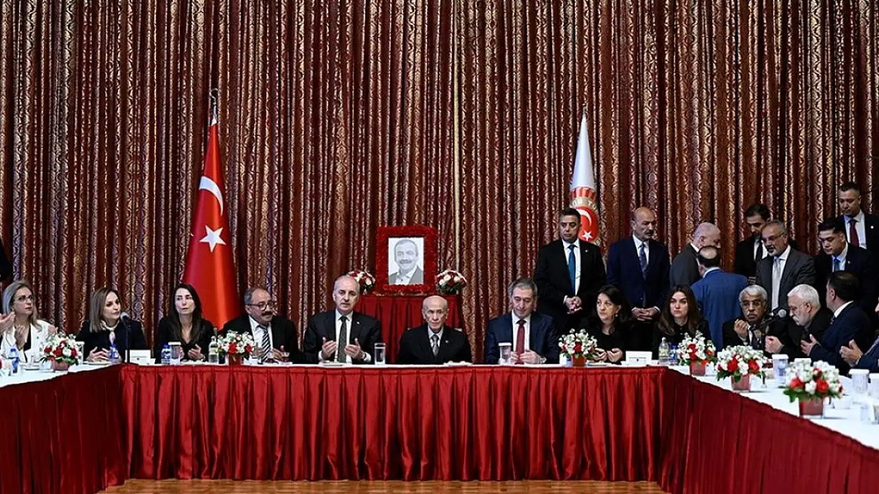 Kurtulmuş'un ardından salona gelen MHP Lideri Bahçeli'yi DEM Parti heyeti kapıda karşıladı. Salon girişinde bulunan Önder'in fotoğrafına dokunan Bahçeli, DEM Parti heyeti ve Önder'in kardeşi ile sohbet etti. 99 gün sonra ilk kez bir programa katılan Bahçeli, törende 15 dakika kaldı.