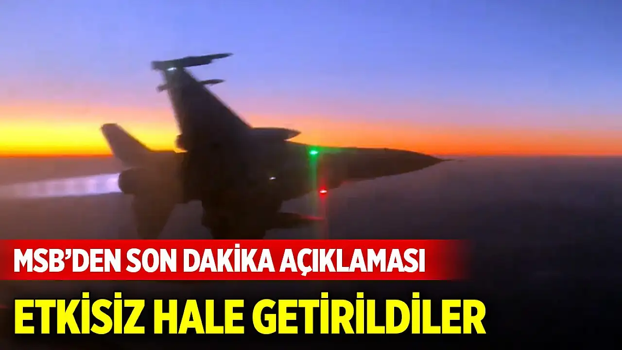 Son Dakika Haberi... MSB: Irak'ın kuzeyine 7, 8, 9 Eylül 2024 tarihlerinde düzenlenen hava harekatları sonucunda toplam 19 terörist etkisiz hale getirildi.