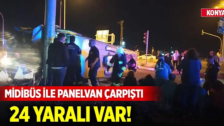 Konya'da trafik kazası... Midibüs ile panelvan aracın çarpışması sonucu meydana gelen trafik kazasında 24 kişi yaralandı.