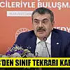 Bakan Tekin, yardımcı kitaplar, seçimlik dersler gibi bazı konularla yaptıkları çalışmayı yakın zamanda kamuoyuyla paylaşacaklarını vurgulayarak, “Özellikle okul terkleriyle ilgili yaşanan sorunlar var, onlarla ilgili değişiklikler eğitim öğretim yılı başlamadan önce ilgili mevzuat değişiklikleriyle kamuoyuyla paylaşılmış olacak. Aynı şekilde özellikle ortaöğretim kurumlarındaki öğretmen arkadaşlarımızın çok dile getirdikleri hususlar oldu. Bunlardan bir tanesi, özellikle liselerde sınıf tekrarının olmamasının kaynaklanan sorunlardan söz edildi. Bu zaten bizim de gündemimizdeydi, dolayısıyla bununla ilgili bir tedbir alacağız, yeni dönemde sınıf tekrarının mümkün olduğu bir süreç söz konusu olacak” bilgisini paylaştı.