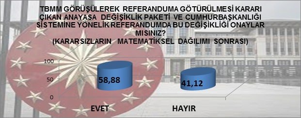 Kararsızların matematiksel dağılımı sonrası ortaya çıkan tablo EVET % 58,88 HAYIR % 41,12 çıkmaktadır.
