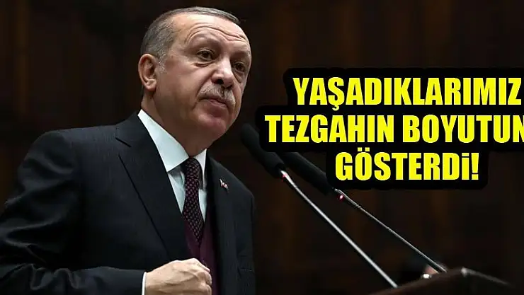 Cumhurbaşkanı Erdoğan 'Son süreçte yaşadığımız her tecrübe her başarı, indirdiğimiz her maske, ülkemize kurulan tezgahın boyutlarını da gözler önüne sermiştir. Afrin bölgesinde şahit olduklarımız asıl hedefin Türkiye olduğunu ortaya koymuştur' dedi.