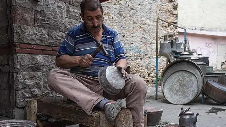Kaybolmaya yüz tutmuş mesleklerden kalaycılığın Antalya'daki son temsilcisi 51 yaşındaki Haydar Demir, bu mesleği oğluna öğreterek yaşatmaya çalışıyor.