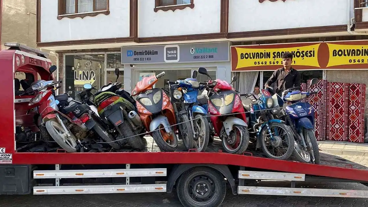 Bolvadin İlçe Emniyet Müdürlüğü'ne bağlı trafik ekipleri tarafından ilçenin farklı noktalarında motosiklet sürücülerine yönelik denetim yapıldı. Denetimlerde durdurulan motosikletlerin tescil ve plaka sorgulamaları yapıldı. Yapılan denetimlerde 39 motosiklet trafikten men edildi. Toplanan motosikletler çekicilere yüklenerek otoparklara götürüldü.