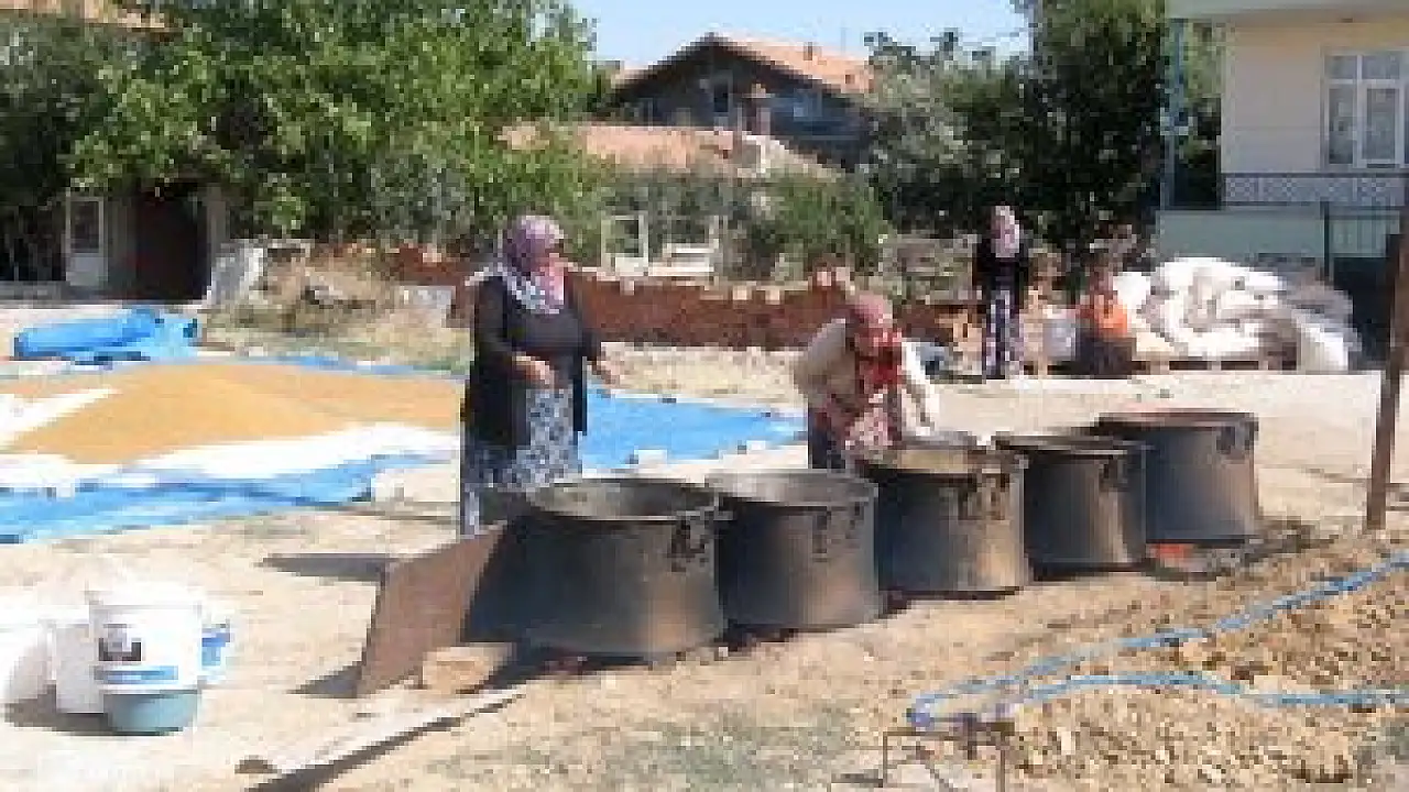 Yozgat'ın Sorgun ilçesinde kurulan bulgur kazanlarında hedik (bulgur) kaynatılmaya başlandı.