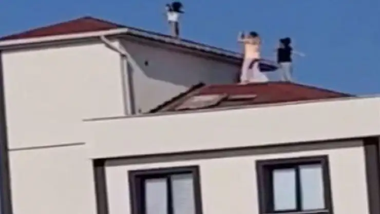 Pendik'te küçük bir çocuğu çatıya çıkararak fotoğraf çekmek isteyen iki kişi adeta faciaya davetiye çıkardı. İki genç kız küçük kıza nasıl poz vereceğini de tarif ederken, küçük kızın canını hiçe sayan sorumsuzlar cep telefonu kamerasıyla kaydedildi.