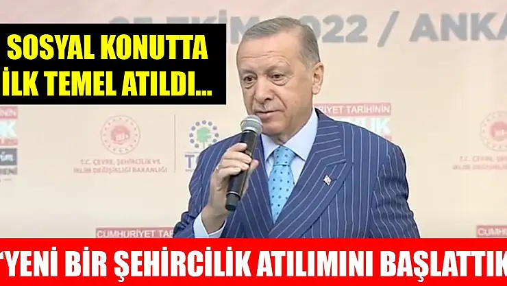 Cumhurbaşkanı Erdoğan, 'Bugün itibarıyla Türkiye'de artık illerimizin, ilçelerimizin tamamını kuşatan yeni bir şehircilik atılımını başlattık.' dedi.