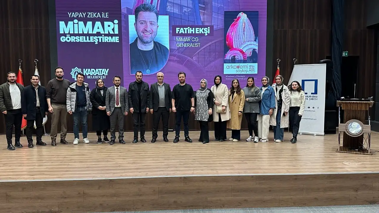 Mimarlar Odası Konya Şubesi'nin davetlisi olarak Konya'ya gelen mimar, görselleştirme sanatçısı ve sosyal medya fenomeni Fatih Ekşi, 11 Nisan Cuma günü 'Yapay Zeka ile Mimari Görselleştirme' konulu bir söyleşi gerçekleştirdi.