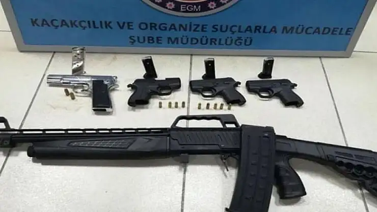 Evde yapılan aramada, 4 el yapımı tabanca ve bu silahlara ait 11 mermi ile bir ruhsatsız av tüfeği ele geçirildi.