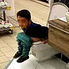 Sakarya'da ki bir AVM'de bulunan mağazaya gelen minik bir çocuk satışa sunulan klozete tuvaletini yaparak, adeta klozeti test etti.