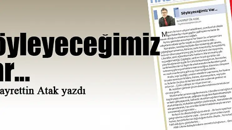 Söyleyeceğimiz Var… Hayrettin Atak yazdı...