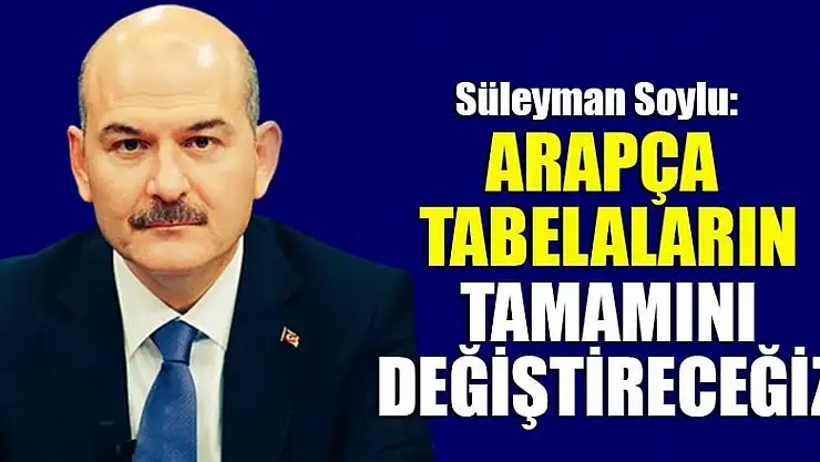 İçişleri Bakanı Süleyman Soylu, 'İlk kez söylüyorum, Türkiye'de 6 aya kadar Arapça tabelaların tamamını değiştireceğiz. Kilis'te yaptık. Bir standart var, tamamı Türkçe oluyor. Altında ufak bir Arapça yazmak istiyorsa yazsın. 'dedi