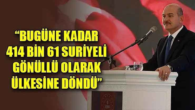 Bakan Soylu, "Sınır ötesi harekatlarımızla oluşturulan güvenlik sayesinde, bugüne kadar 414 bin 61 Suriyeli gönüllü olarak ülkesine döndü." ifadelerini kullandı.