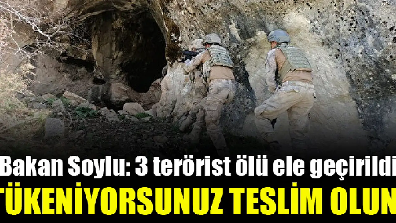 Bakan Soylu, Twitter'dan yaptığı paylaşımda, "Emniyet ve jandarmamız; Eren Abluka-5 operasyonlarında Şırnak Bestler Dereler bölgesinde, J-SİHA ve İHA destekli müşterek operasyonda, Besta Grubundan 3 teröristi M-16 silahlarıyla birlikte ölü ele geçirdi. Tükeniyorsunuz. Teslim olun." ifadelerini kullandı.