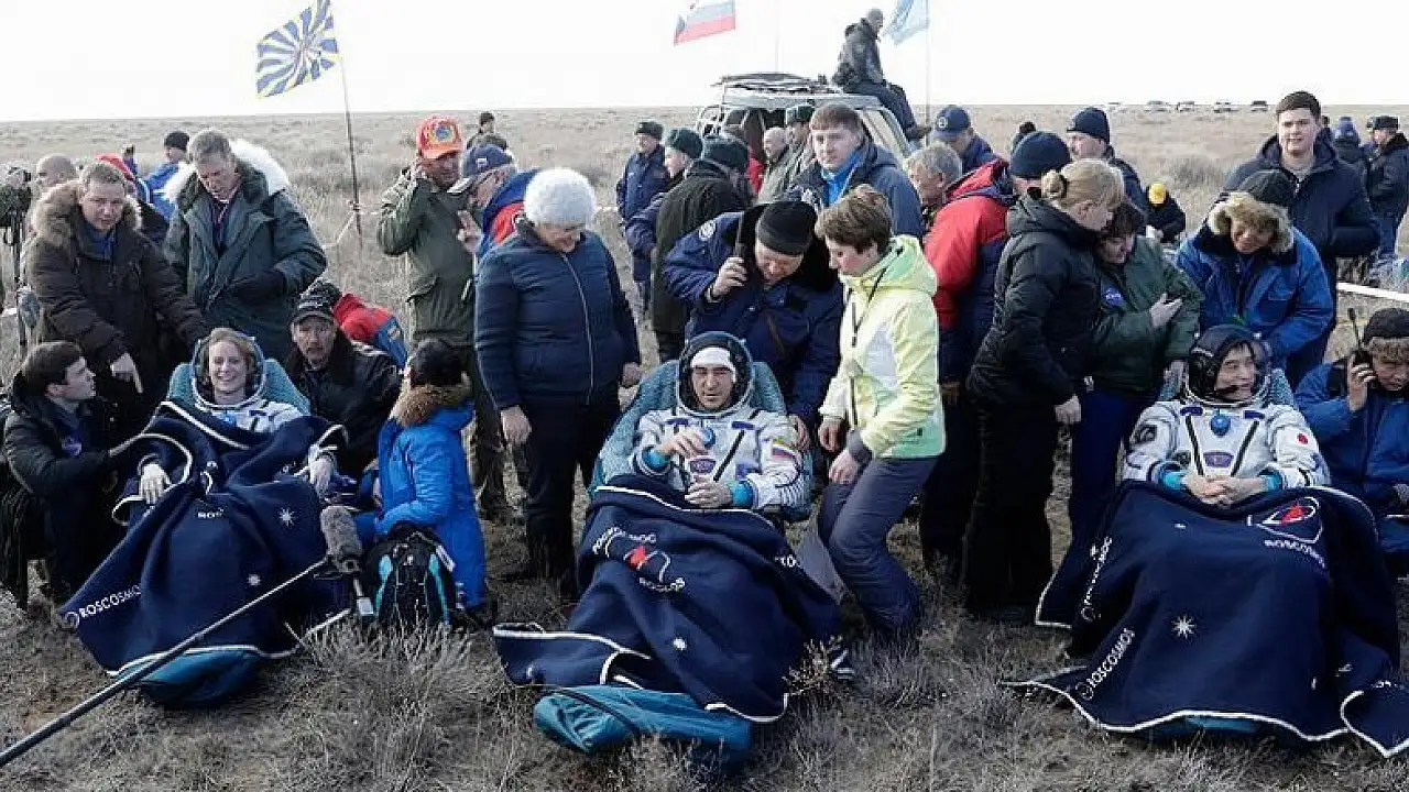 Kazakistan'ın Jezkazgan şehri yakınlarına iniş yapan kapsülden çıkarılan Rubins, İvanşin ve Onişi'nin, sağlık kontrolleri için yakındaki tıbbi çadıra götürüldüğü bildirildi. Astronotlar, yer çekimine yeniden alışmalarının ardından testlerden geçirilecek.