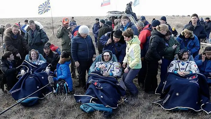 Uluslararası Uzay İstasyonu'nda 115 gündür görev yapan kozmonot ve astronotları taşıyan Soyuz kapsülü, Kazakistan'a başarılı şekilde indi.