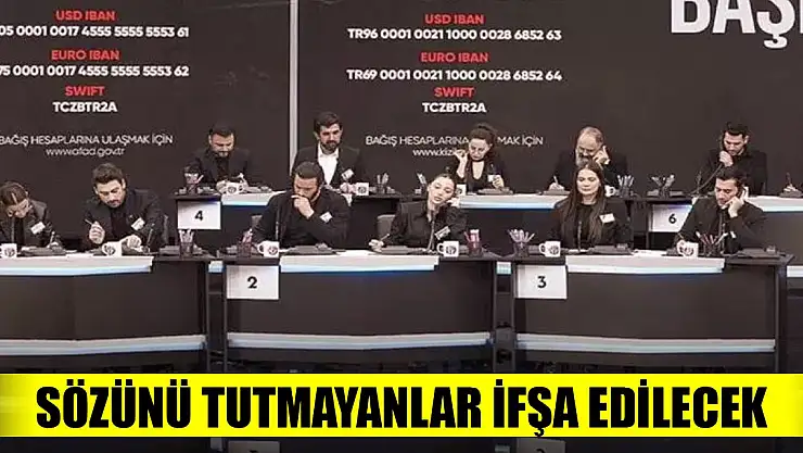AFAD yetkilileri, yardım kampanyasına katılma sözü veren ve şu ana kadar ödeme yapmayanlarla iletişime geçtiklerini belirterek, “Bağış-yardım konusu isteğe bağlı, bir zorunluluk söz konusu değil. Söz verip sonradan bu sözünü yerine getirmeyenlerle ilgili etik ve ahlaki bir durum ortaya çıkıyor” dedi. AFAD’ın ilerleyen süreçte ödeme yapan kurum ve kuruluşların listesini yayınlayacağı, böylece söz verip ödeme yapmayanların “İFŞA” edileceği belirtildi.