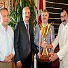 Ziyaret sonunda Ay ve Çınar, Akyürek'e Türk sporuna katkılarından dolayı teşekkür plaketi ve milli takım forması verdi.