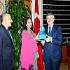 Ziyaretten duyduğu memnuniyeti dile getiren Büyükşehir Belediye Başkanı Tahir Akyürek ise, şehirler arasındaki ticari ve kültürel alışverişin önemine dikkat çekti. Konya’nın aynı zamanda Dünya Tarihi Şehirler Birliği’nin Yönetim Kurulu’nda bulunduğunu hatırlatan Başkan Akyürek, “Sri Lanka’dan tarihi özelliği olan bir şehirle kardeş olarsak onun da birlik üyesi olmasına katkı yaparak ortak çalışmalar yapabiliriz” dedi. Başkan Akyürek, ziyaretin sonunda konuğuna çini sikke ve Mesnevi hediye ederken, Büyükelçi Wijerante de Başkan Akyürek’e Sri Lanka’ya özgü çeşitli hediyeler verdi.
