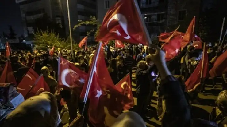 Çankaya'daki Fransa'nın Ankara Büyükelçiliği önünde toplanan STK üyeleri, Fransa Cumhurbaşkanı Emmanuel Macron ve ülkesi aleyhine slogan attı.