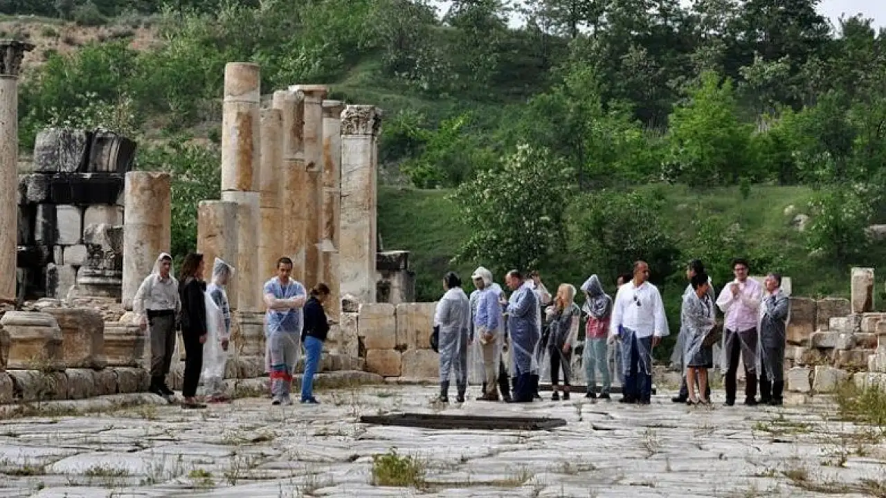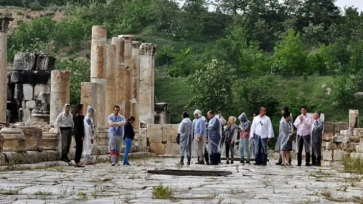 Etkinlik öncesinde tarihi kente gelen Yatağan Belediye Başkan Yardımcısı Tarcan Oğuz, Muğla Gençlik Hizmetleri ve Spor İl Müdürü Serkan Öçalmaz, TMOK Spor Kültürü ve Olimpik Eğitim Proje Sunucusu Sibel Yazgan Tel ve ilgili kurumların temsilcilerinden oluşan heyet, Stratonikeia Antik Kenti Kazı Başkanı Prof. Dr. Bilal Söğüt eşliğinde, sağanak altında kenti gezdi.