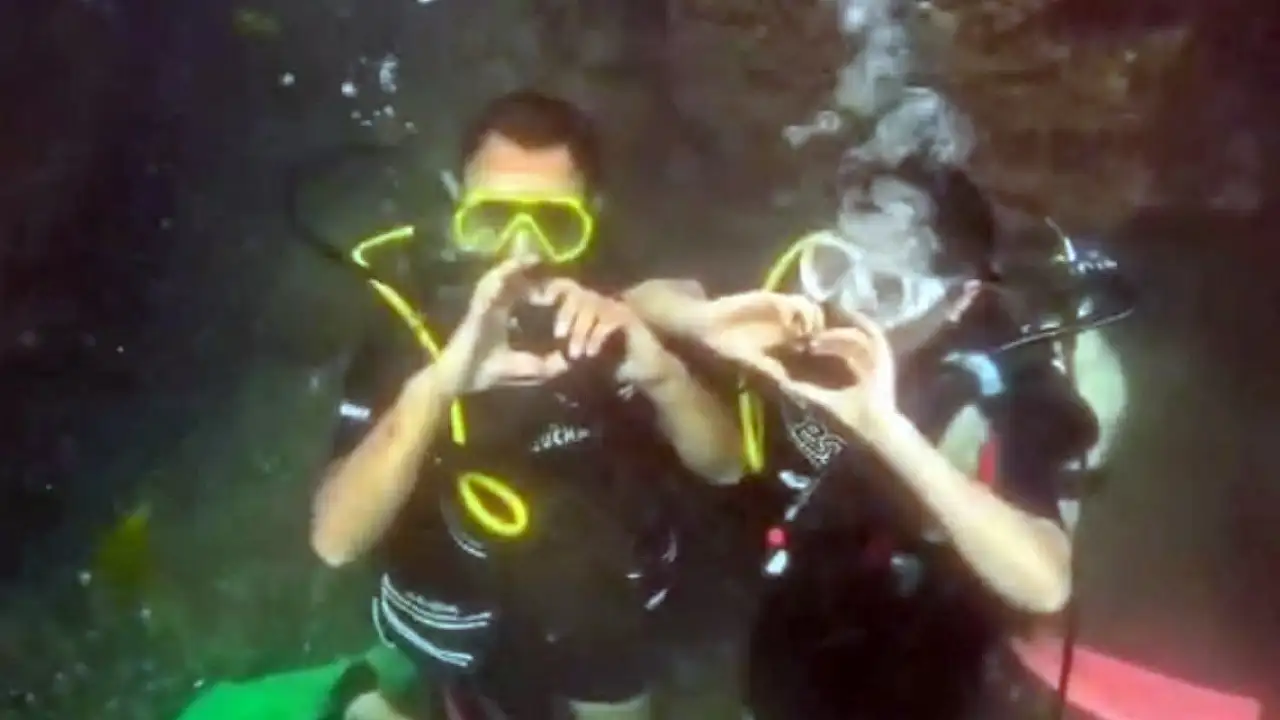 ORDU'nun Perşembe ilçesinde Sefa Türel (27) kız arkadaşı Damlanur Sarı'ya (27) Karadeniz'in mavi sularının altında evlenme teklifinde bulundu.