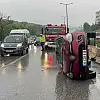 Su birikintisi sebebiyle kontrolden çıkan araç takla attı