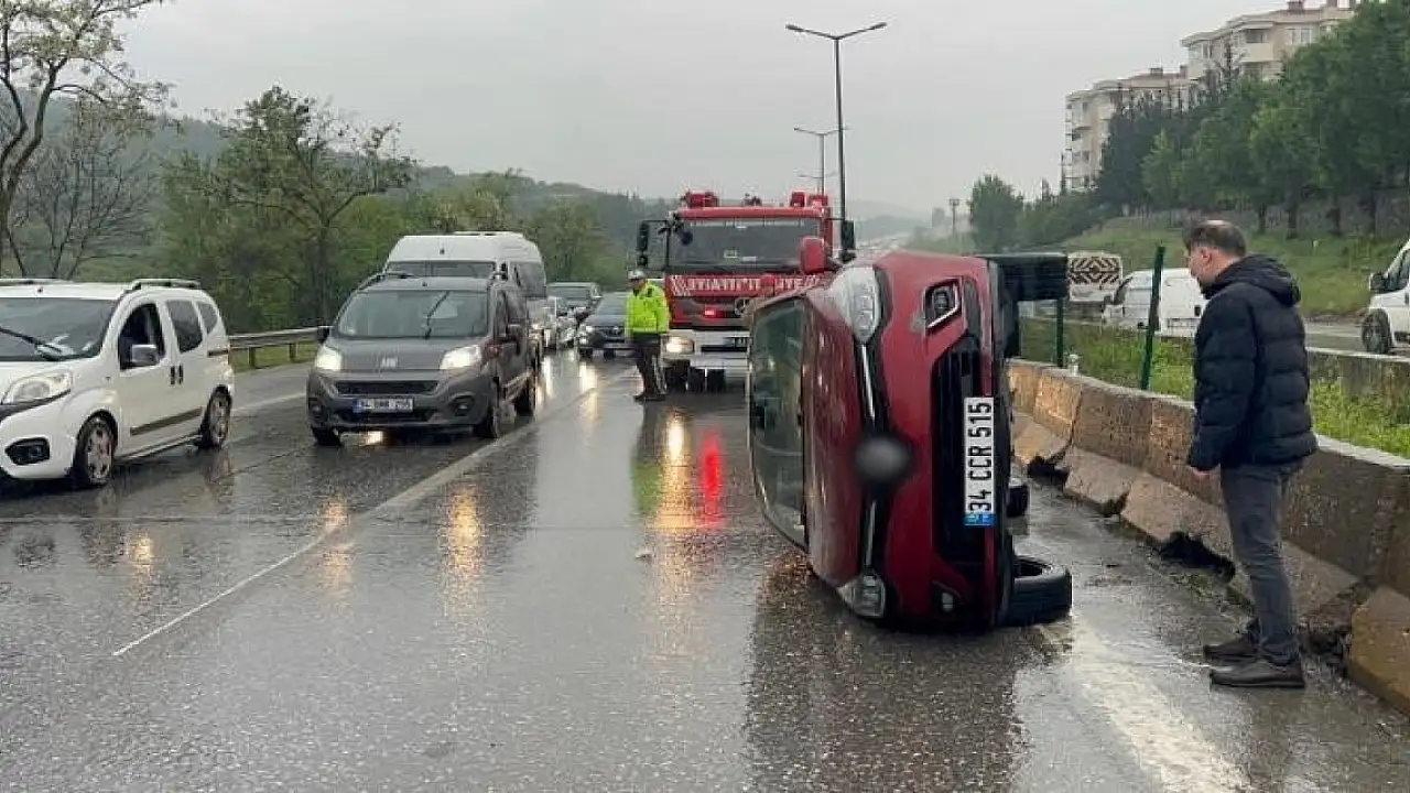 Olay TEM Sancaktepe Kartal bağlantı yolu Soğanlık mevkiinde saat 06.40 sıralarında meydana geldi. Edinilen bilgiye göre 34 CCR 515 plakalı otomobil sürücü Mustafa Ergen seyir halindeyken yoldaki su birikintisinden dolayı kontrolden çıktı. Kontrolden çıkan otomobil takla attı. Durumun bildirilmesi üzerine olay yerine itfaiye, sağlık ve polis ekipleri sevk edildi. Kazada yaralanma yaşanmazken bağlantı yolu Kartal istikametinde trafik yoğunluğu oluştu.