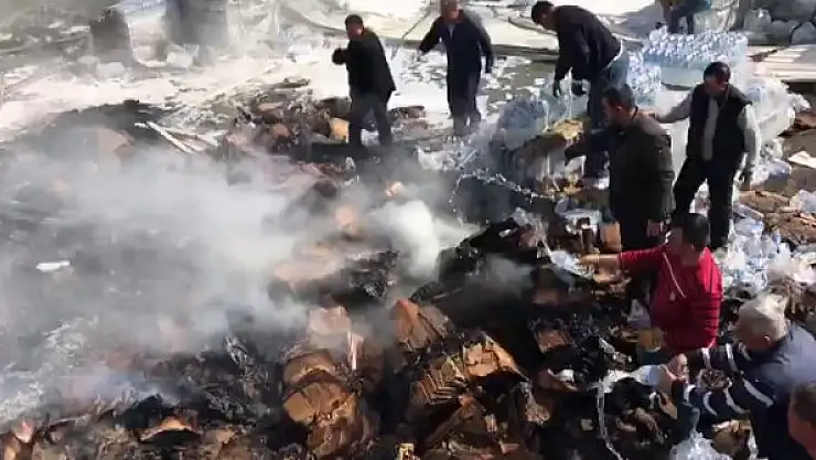 Su fabrikasındaki yangına pet şişeyle müdahale