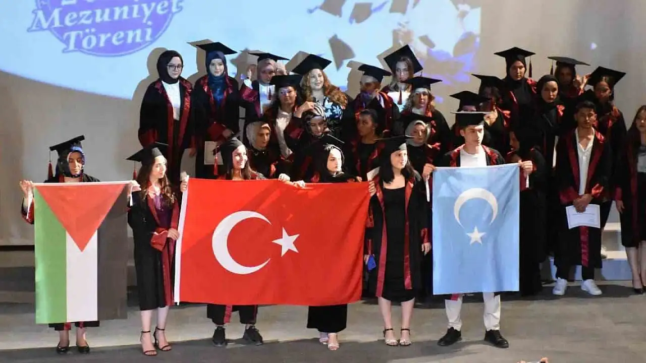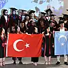 Programda Türk bayrağı, Filistin ve Doğu Türkistan bayraklarının açılması salondakilerden büyük alkış aldı.