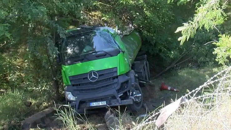 Bariyerleri aşan su tankeri şarampole devrildi. Tanker şoförü ve yanındaki kişi yaralandı.
