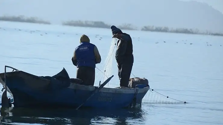 Konya'nın güneybatısındaki Suğla Gölü'nde geçimini balıkçılıkla sağlayan aileler, gün doğmadan açıldıkları sularda ısı farkından oluşan sisin arasında balık avlayarak evine ekmek götürüyor