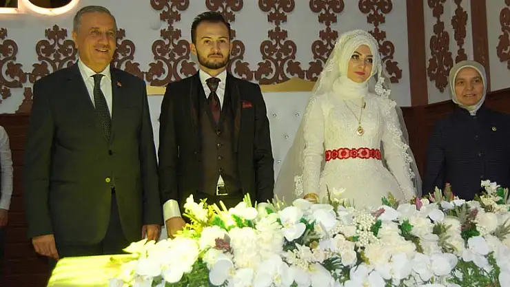 Kıyılan nikahın ardından AK Parti Konya Milletvekili Hüsnüye Erdoğan evlilik cüzdanını, damat ve geline teslim etti.