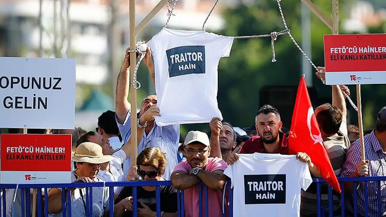 Vatandaşlar, dünkü duruşmaya üzerinde Türkçesi "Kahraman" anlamına gelen İngilizce "Hero" yazan tişörtle gelen sanık Gökhan Güçlü'ye tepkilerini "Hain" anlamındaki "Traitor" yazan tişörtler giyerek gösterdi. Vatandaşlar iki tişörtü darağacına astı. Sanık Güçlü'nün fotoğrafının da yer aldığı üzerinde "Katilden Kahraman Olmaz" yazan pankart açıldı.