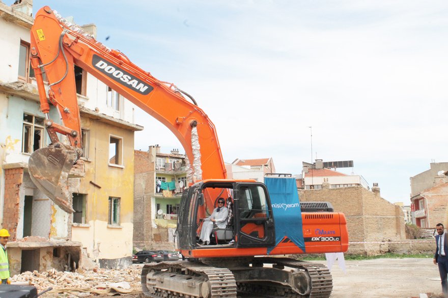 Bölgenin dönüşümünde ticari kaygı taşımadan sadece şehrin kazanımlarını hedeflediklerini vurgulayan Başkan Toru, “Belediyemizin tüm imkanlarını seferber ederek bugüne kadar geldik. İnşallah yaz döneminde 1 veya 2 adada temel atarak bu sürecin de startını vermiş olacağız. İki farklı mimarımız bu bölgede çalışıyor. Sürekli olarak projelerimizi geliştiriyoruz. Kamuoyunun bu bölgeyle ilgili ciddi hassasiyetleri var ve çok olumlu geri dönüşler aldığımızı da ifade etmek istiyorum. Çünkü bu bölge şehrin kanayan yarası ve kangren olmuş bir bölge. Larende Yokuşu’ndan şu anda hanımlarımız, genç kızlarımız, çocuklarımız ve yetişkinler geçemiyor ve geçiş güzergâhı olarak burayı tercih etmiyor. Ama bu yıkımlardan sonra inşallah huzur ve güven içinde insanlarımız buradan geçebilecek” diye konuştu. Meram Belediye Başkanı Fatma Toru, yıkım yapan bir kepçede direksiyon başına geçerek basın mensuplarına poz verdi.