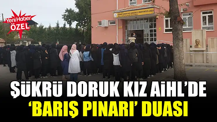 Şükrü Doruk Kız Anadolu İmam Hatip Lisesi “Barış Pınarı Harekatı”na katılan bütün Mehmetçiklerin operasyonu başarıyla tamamlayıp zaferle dönmeleri için öğrenci, öğretmen, idare ve bütün personel olarak okul bahçesinde topluca dua etti. Duayı Okul Müdürü Hüseyin Kadir Balcı yaptı.