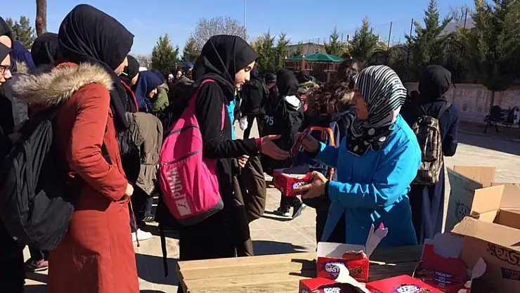 Konyalı hayırseverlerin desteğiyle alınan şivlilikler okul bahçesinde tüm öğrenci ve öğretmenlere ikram edildi.