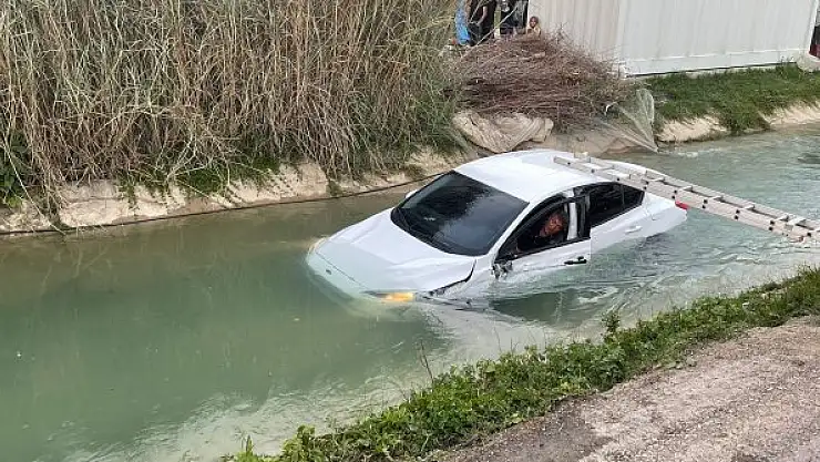 MERSİN'in Tarsus ilçesinde, otomobiliyle sulama kanalına uçan Adem K., itfaiye ekibi tarafından aracıyla birlikte kurtarıldı. Alkollü olduğu ileri sürülen Adem K., ayakta tedavi edildi.