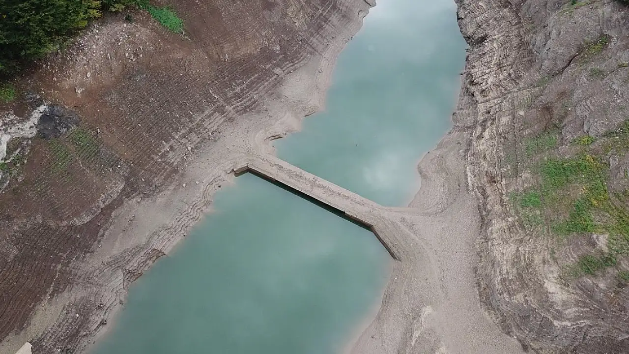 Kocaeli'nin Başiskele ilçesinde, içme suyu ihtiyacının büyük bir bölümünün karşılandığı Yuvacık Barajı'nda su seviyesi yüzde 35'lere düşünce havzasındaki köprü ortaya çıktı.