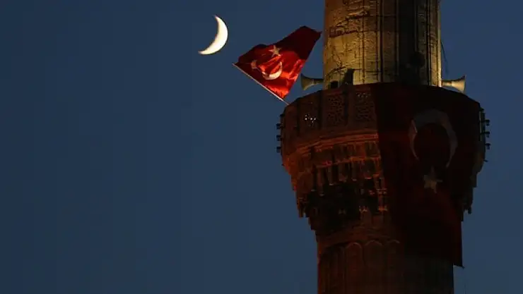 Sultanahmet minarelerinde Türk bayrağı dalgalandı