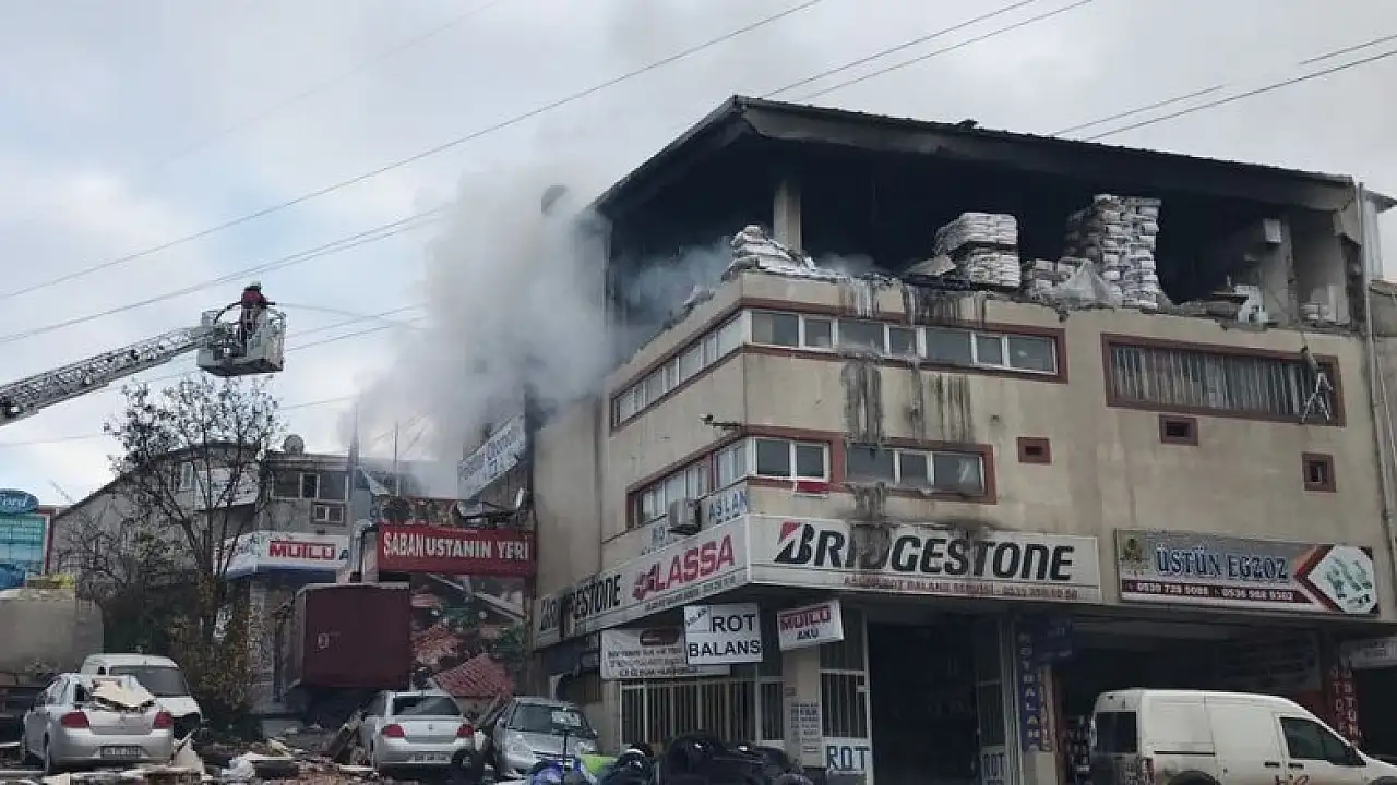 Akşemsettin Mahallesi Atatürk Caddesi'ndeki Oto Sanayi Sitesi içerisinde, henüz bilinmeyen nedenle meydana gelen patlamanın ardından yangın çıktı.