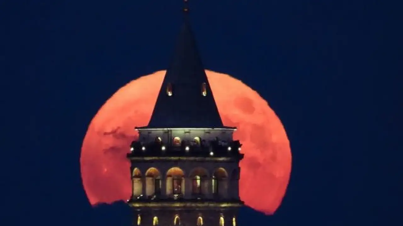 Süper Ay, dün gece İstanbul semalarında Galata Kulesi'yle birlikte görsel şölen oluşturdu. Parlaklığı ve yavaş yavaş turuncudan beyaza dönen renkleri ile izleyenleri mest eden dolunay, Dünya'dan ortalama 363 bin 300 kilometre olan uzaklığıyla en yakın konuma geldi.