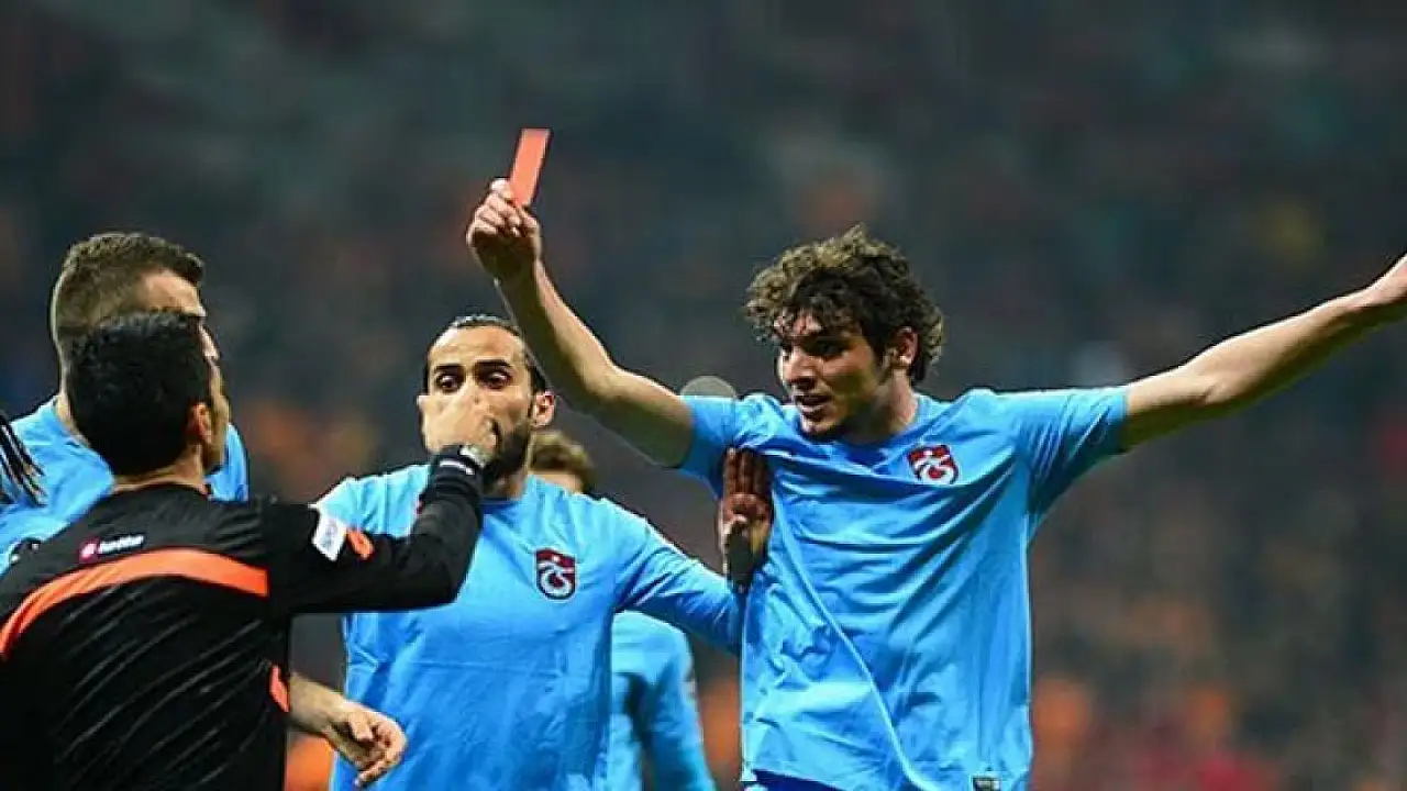 Trabzonsporlu futbolcu Salih Dursun, maçın hakemine kırmızı kart göstererek lig tarihinin en ilginç olaylarından birisine imza attı.