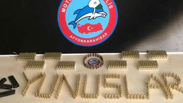 Afyonkarahisar'da denetim yapan motosikletli polis timleri şüphe üzerine durdurdukları araçta ruhsatsız tabanca ile 623 adet mermi ele geçirdi.