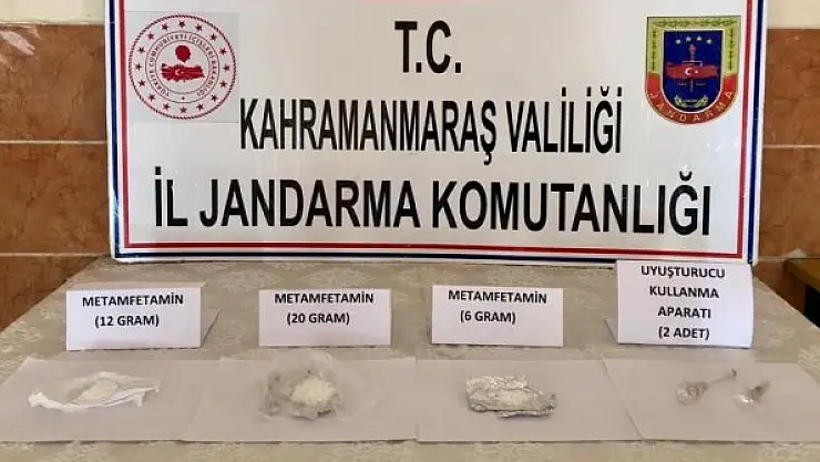Afşin ilçesi Kötüre Mahallesinde bir istihbaratı değerlendiren Afşin ve Elbistan ilçe Jandarma ekipleri Göksun istikametinden Afşin istikametine gelmekte olan bir aracı durdurarak arama yaptı. Yapılan aramada ekipler 38 gram metamfetamin ele geçirdi. İki zanlıyı gözaltına aldı.