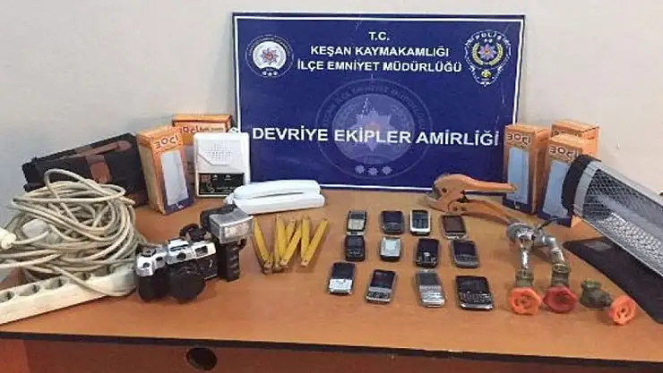 Edirne'nin Keşan ilçesinde devriye gezen polis ekipleri sabahın erken saatlerinde içinde çalıntı malzemelerin olduğu çuvalla gezen iki kişiyi yakaladı. Çok sayıda elektronik alet ve sanayi malzemeleri ele geçirilen iki kişi gözaltına alındı.