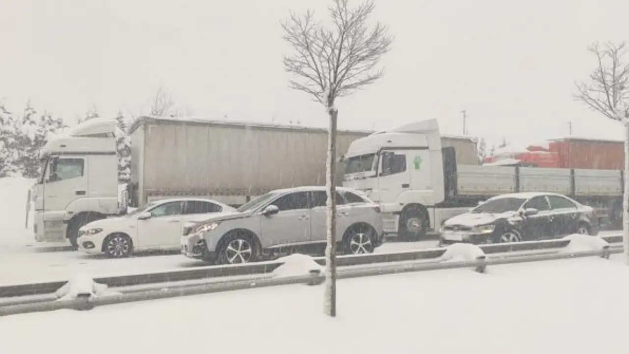 Yoğun kar yağışı sebebiyle Yalova-Bursa yolunun Süpürgelik mevkiinde trafik akışı yer yer durma noktasına geldi.