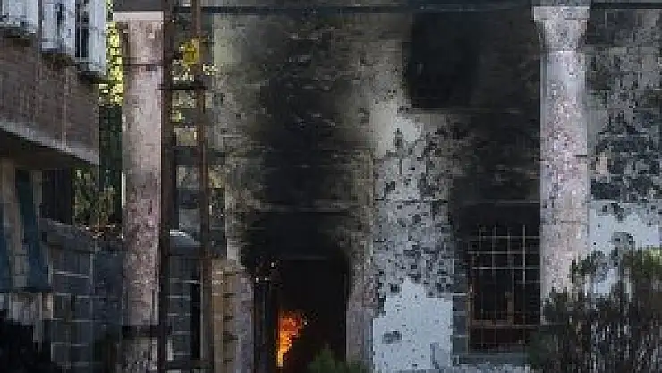 Teröristlerce atılan el yapımı patlayıcı nedeniyle çıktığı tahmin edilen ve kısa sürede büyüyen yangına müdahale için bölgeye gönderilen itfaiye ve polis ekiplerine örgüt mensuplarınca ateş açıldı. Teröristlerin saldırılarının sürmesi nedeniyle ekiplerin müdahalede bulunamadığı yangında, Osmanlı döneminden kalma caminin büyük oranda zarar gördüğü öğrenildi.