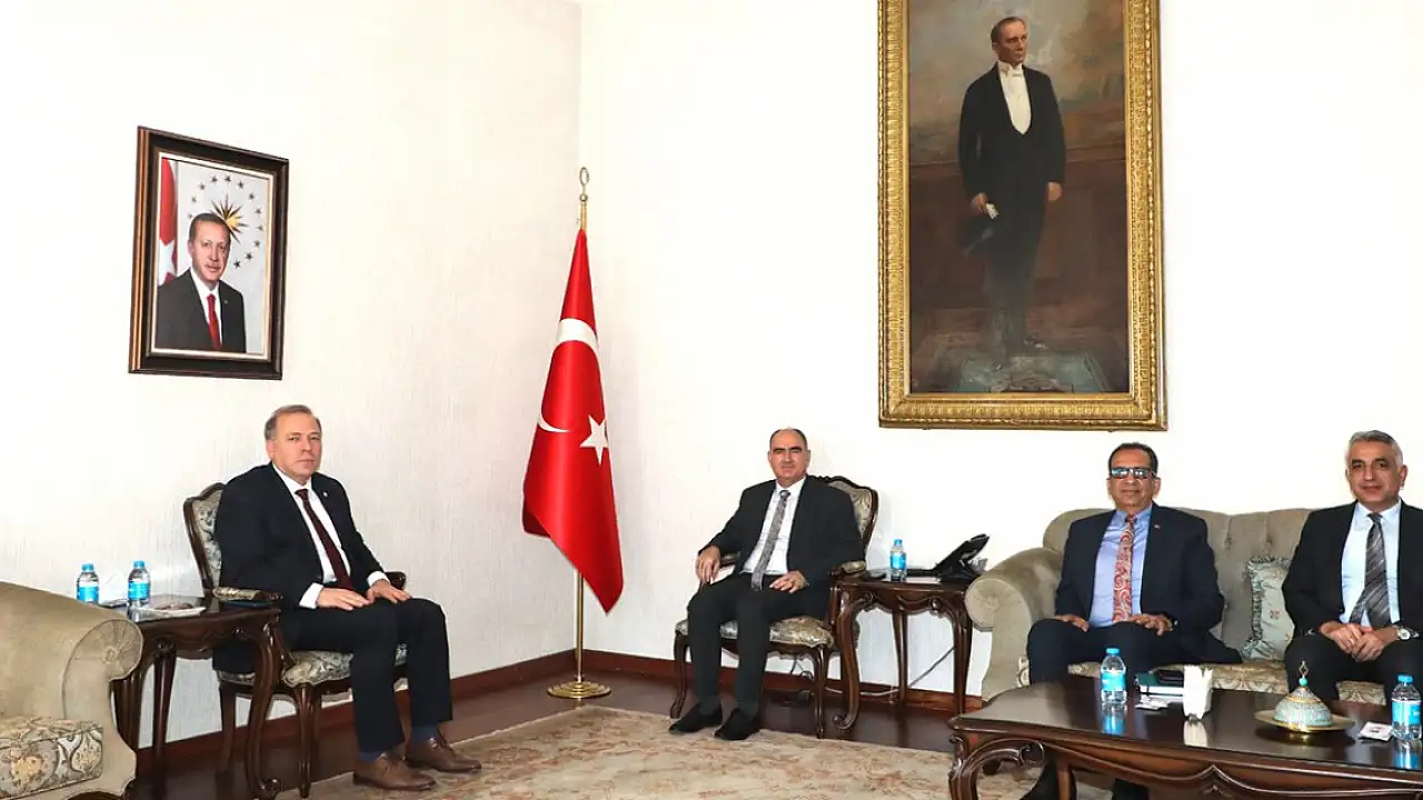 İl Su Koordinasyon Kurulu Toplantısı için Konya’ya gelen, Su Yönetimi Genel Müdür Yardımcısı Mustafa Uzun Su Kalitesi Daire Başkanı Mahir Özcan, Bölge Müdürü Mehmet Ekinci ve ile birlikte Konya Valisi Vahdettin Özkan’ı makamında ziyaret ettiler. Ziyarette, son yıllarda gittikçe dikkat çeken iklim değişikliğinin etkileri karşısında, az olan su kaynaklarının sürdürülebilir biçimde yönetilmesi, mevcut su kaynaklarının korunması, alternatif su kaynaklarının geliştirilmesi, sürdürülebilir su politikalarının oluşturulması konularında görüş alışverişinde bulundular.