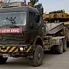 Kilis'te askeri araç ve beton bariyerlerin yüklendiği TIR'lar, Suriye sınırındaki Kilis'in Elbeyli ilçesine ulaştı.